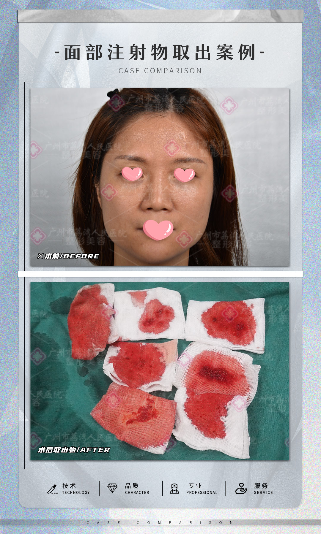钟女士说,她很担心鼻部奥美定取出后会留下疤痕,或者修复后鼻子凹陷毁容。其次还担心医院的清奥技术不好,不能成功取出鼻部的奥美定。而取出不成功造成的危害,也钟女士难以接受的。